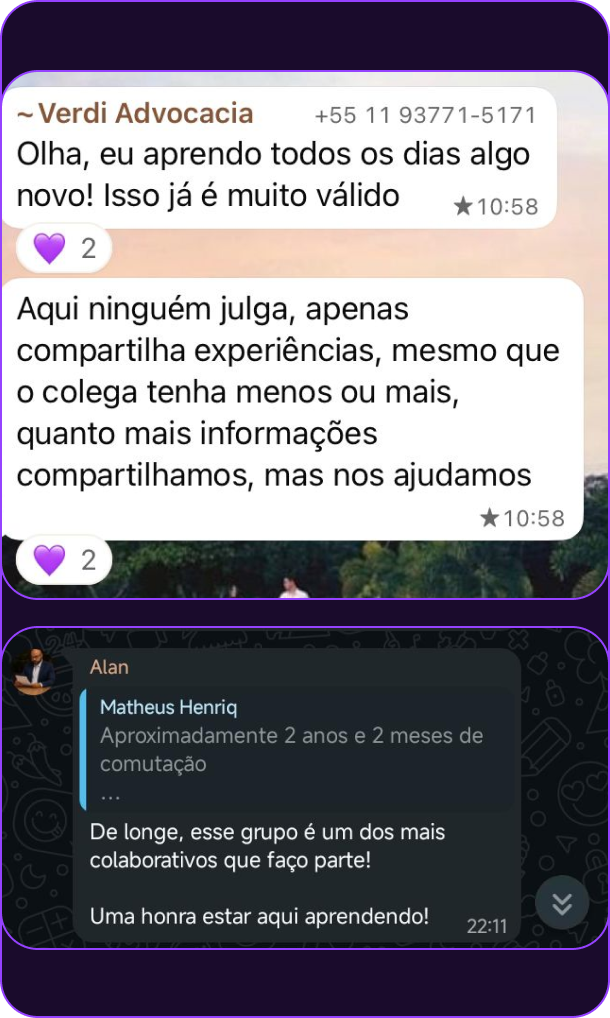 Aqui você não é mais um número. Cada membro recebe atenção, tem espaço para tirar dúvidas e participa de uma comunidade onde as pessoas realmente se ajudam.